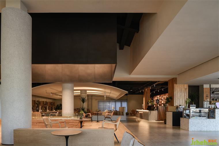 作為一家復合型社區(qū)餐酒空間,拾光·打野具有咖啡、餐飲、飲酒、展覽、接待、社區(qū)中心等多樣化的功能,也是半島湖居生活中重要的精神標簽,與蜜盒酒店、棲客營地等文旅資源及半島社區(qū)形成有機良性的互動,餐廳設計為旅居客戶及社區(qū)業(yè)主提供豐富多樣的生活服務。