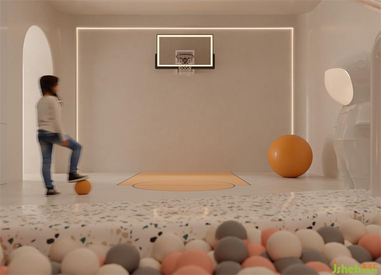項(xiàng)目第二期中設(shè)計(jì)師還將繼續(xù)遵循童趣探索的主線,成功地將原本可能被視為功能單一且“消極”的地下室空間重塑為一個(gè)兼?zhèn)涠嘣螒蛟O(shè)備和全方位體育設(shè)施的家庭游樂殿堂。