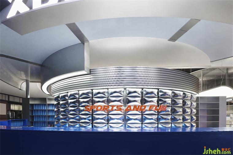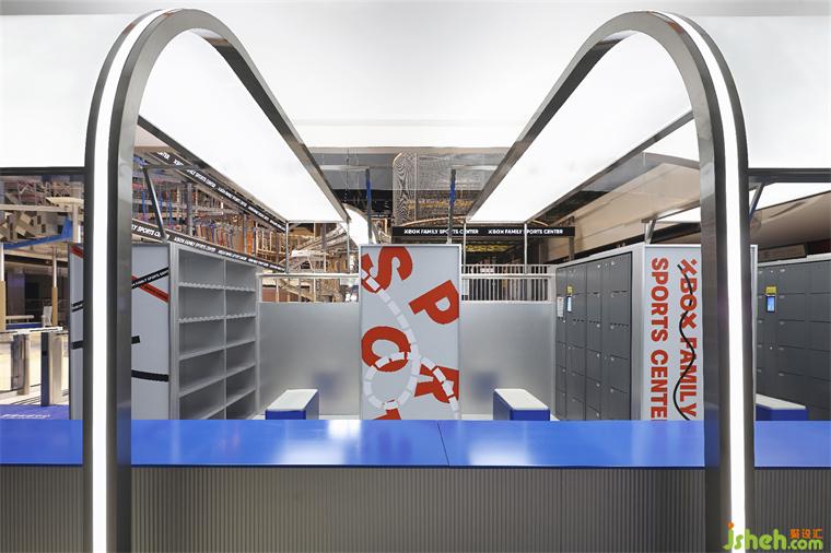 入口處醒目的半圓形接待臺(tái)搭配整齊排列的銀色充氣枕,吸引著路過人們的目光。運(yùn)動(dòng)中心設(shè)計(jì)換鞋區(qū)的設(shè)計(jì)不僅方便了顧客快速進(jìn)入運(yùn)動(dòng)狀態(tài),寬敞整潔空間讓初次到訪的游客也能感受到賓至如歸的溫馨。經(jīng)過閘門過渡進(jìn)入一個(gè)有關(guān)創(chuàng)意、幻想的異世界,開闊的挑高空間驟然出現(xiàn)在眼前。