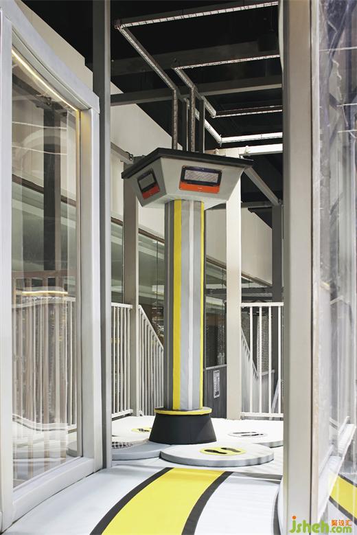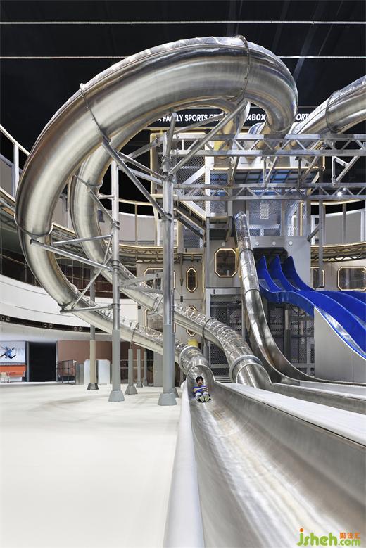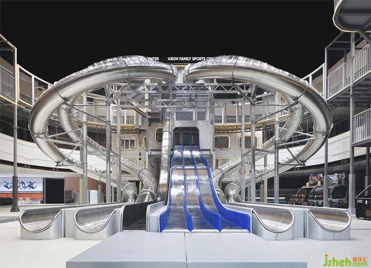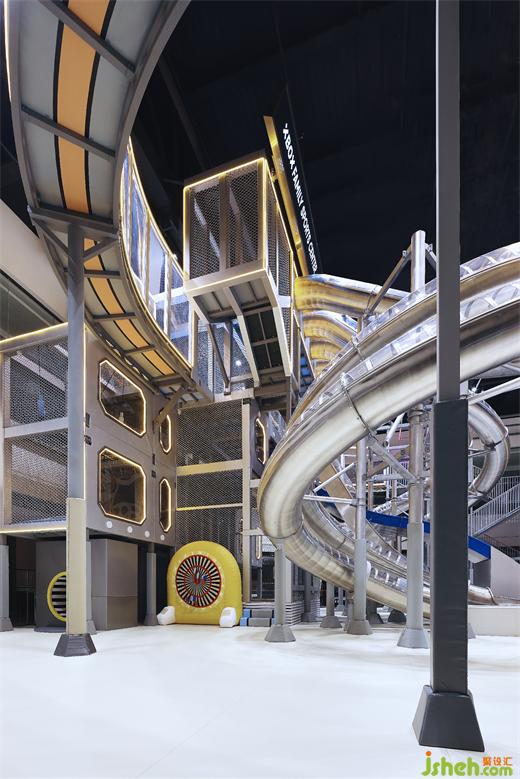 The design of game levels is also integrated into the center. A set of interesting“pipes”near the slides invite players to climb in.