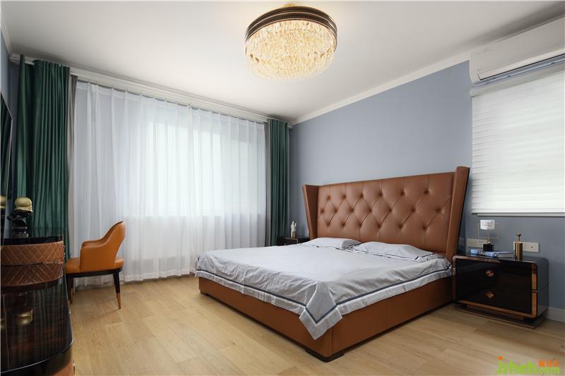 主臥室同樣延續(xù)了時下流行的現(xiàn)代輕奢風格,除了標配元素黃銅、大理石、玻璃等多元材質(zhì)的混搭外南京裝修設(shè)計,在以咖、灰、金為主色調(diào)的空間氛圍中,亮眼的撞色搭配更有利于營造出一種活潑輕快的氛圍,和諧又有層次感,充分滿足了輕奢族對于品質(zhì)居住的完美想象。