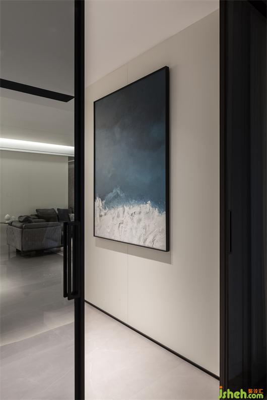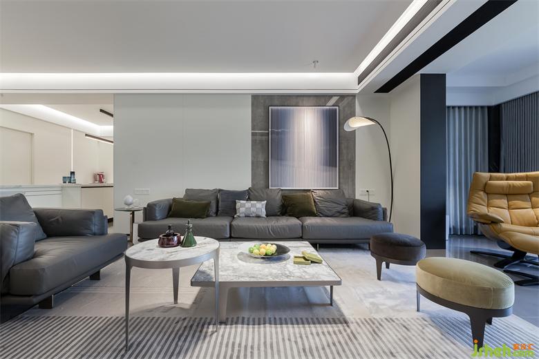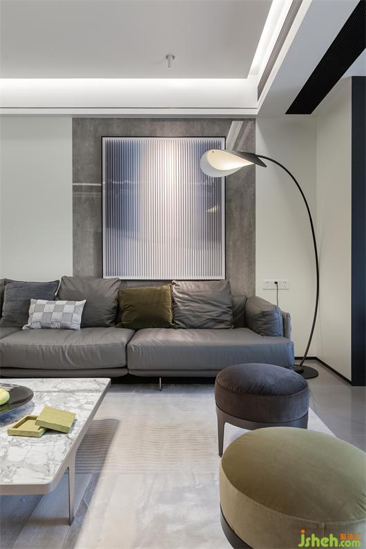 本案業(yè)主是對(duì)心態(tài)極其年輕夫妻,自由隨性,鐘愛(ài)黑白灰極簡(jiǎn)格調(diào)居所。家居設(shè)計(jì)師與業(yè)主對(duì)色彩和設(shè)計(jì)的調(diào)性的認(rèn)知有很多的契合點(diǎn)。高級(jí)灰的流行,黑白灰的受寵,我認(rèn)為,彩度越低,越顯高級(jí)。低彩度并不是無(wú)色,而是控制好色彩純度,保持家居的溫馨感,拒絕冰冷。軟裝用色上,沉穩(wěn)的灰調(diào)、潔凈的白色、極具質(zhì)感的家具,同時(shí)介入鮮艷的色彩,起到活躍空間的作用。