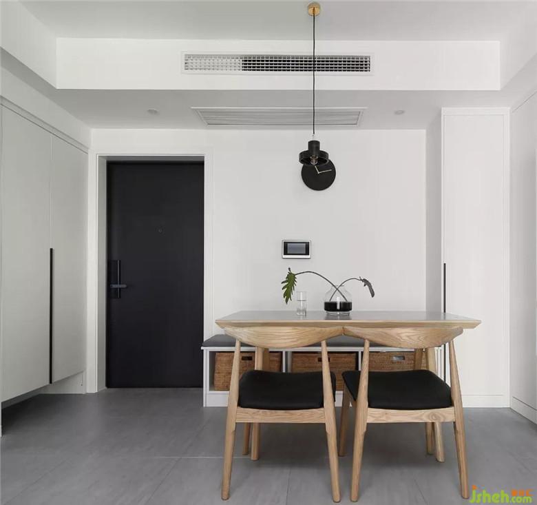 此戶型缺點是沒有門廳,進門就是餐客廳,一覽無余,優(yōu)點是贈送面積可觀,設(shè)計師的解決方案是: