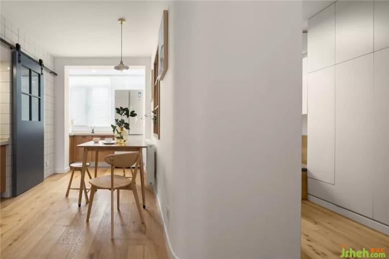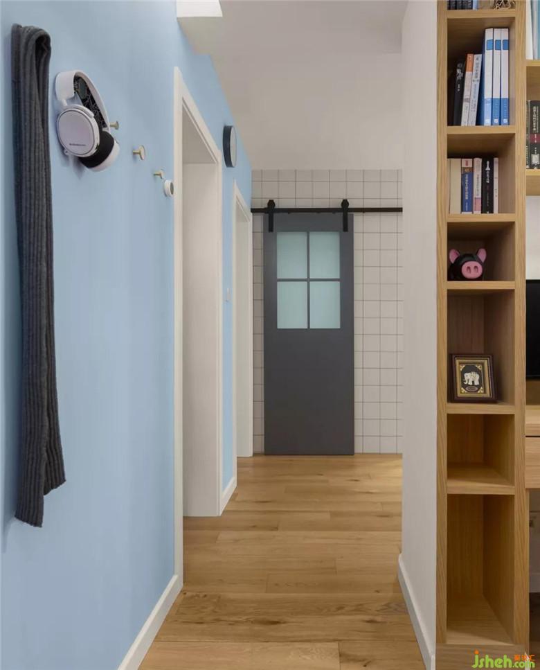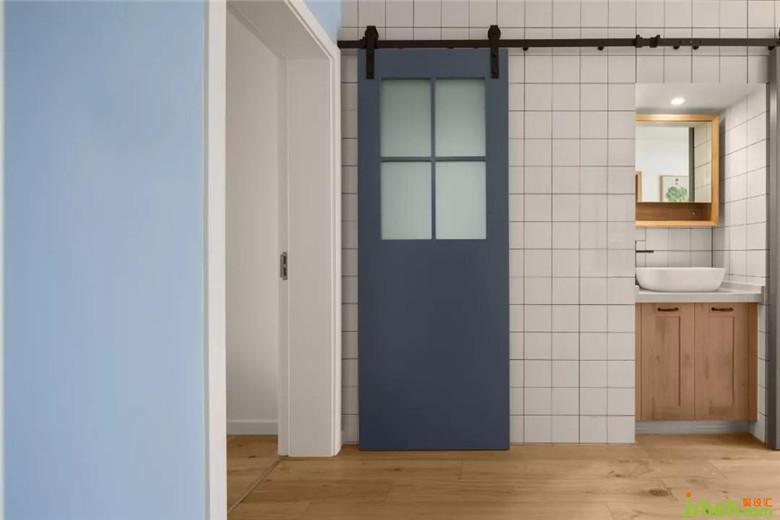 從門廳朝里看是衛(wèi)生間門的谷倉門,在現(xiàn)有格局沒辦法改動(dòng)的情況下就從美觀上來做調(diào)整,半截玻璃的灰色谷倉門進(jìn)門看到的會(huì)是一道風(fēng)景。