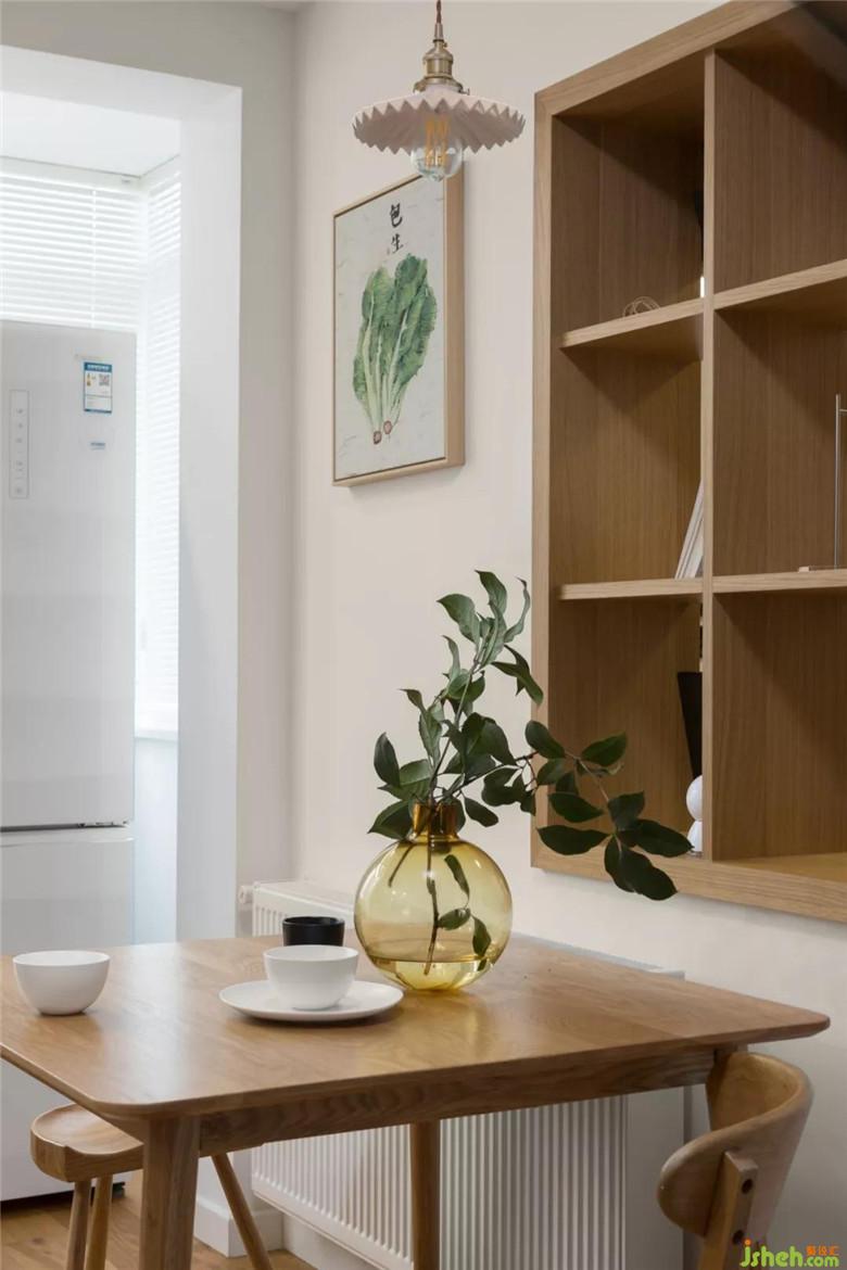 本案屬于典型的“老破小”,戶型特點(diǎn)就是房間大廳小,進(jìn)門處也很狹窄,拿到案子后根據(jù)老房子的樓板走向特點(diǎn)對格局進(jìn)行了局部調(diào)整。最小的房間把靠近門廳的墻體拆掉大部分做了鞋柜,這樣進(jìn)門就有了儲(chǔ)物空間,門廳處也不會(huì)那么擁擠,另外一邊做的榻榻米和寫字臺,平時(shí)是家人休息的地方,和餐廳之間的墻面做了個(gè)隔板裝飾架,兩個(gè)空間有了溝通的渠道。另一方面設(shè)計(jì)師從人性化角度考慮到這是個(gè)兩孩家庭,且孩子都比較小,就把餐廳和過道之間的拐角做成了圓弧狀,空間更加流暢且對于孩子也是一種保護(hù)。