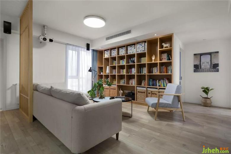 一整面墻的敞開式書柜,同時(shí)也把影音設(shè)備收納其中,也滿足了男業(yè)主一直以來的滿墻書柜的愿望,生活在夢(mèng)想中的房子里,愛人在側(cè),這就是美滿的生活吧!