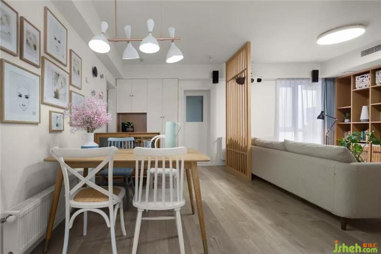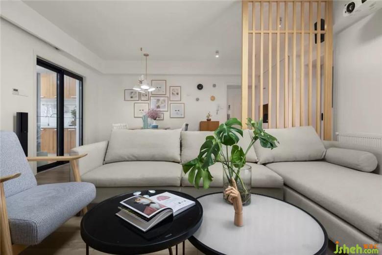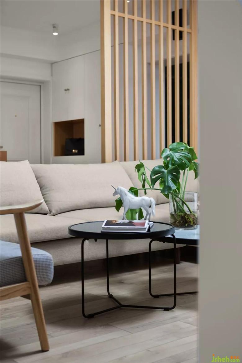 進(jìn)門后在沙發(fā)后面做了一個(gè)實(shí)木隔斷,對(duì)于空間的連貫性和門廳的采光不會(huì)有影響,同時(shí)又起到玄關(guān)遮擋的效果。