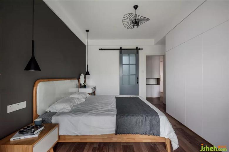 根據(jù)主臥室的尺寸把它的儲物空間規(guī)劃在床尾部分。這樣一方面儲物空間增加,另一方面床兩邊的空間也更加寬敞。對于新手父母來說,后期如果需要增加嬰兒床的話空間也足夠?qū)挸?,又是一舉兩得的事。