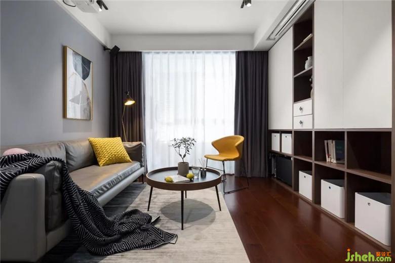 客廳舍棄了傳統(tǒng)電視改成書柜加投影和環(huán)繞音響,針對(duì)不同使用需求。書柜下半部分做了開放式用來放置音響設(shè)備及孩子玩具收納。