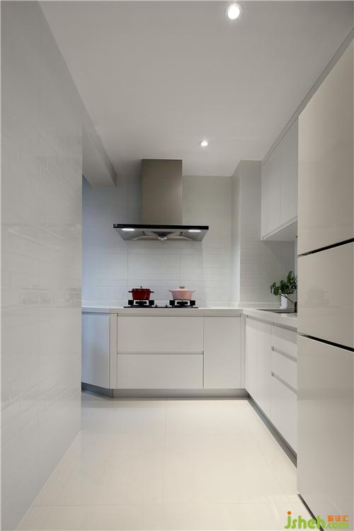 ▲純白的廚房一方面考慮這個空間光線的問題,一方面對于喜愛整潔干凈的業(yè)主MM來說最好不過,一塵不染的白保持著最干凈的狀態(tài)。
