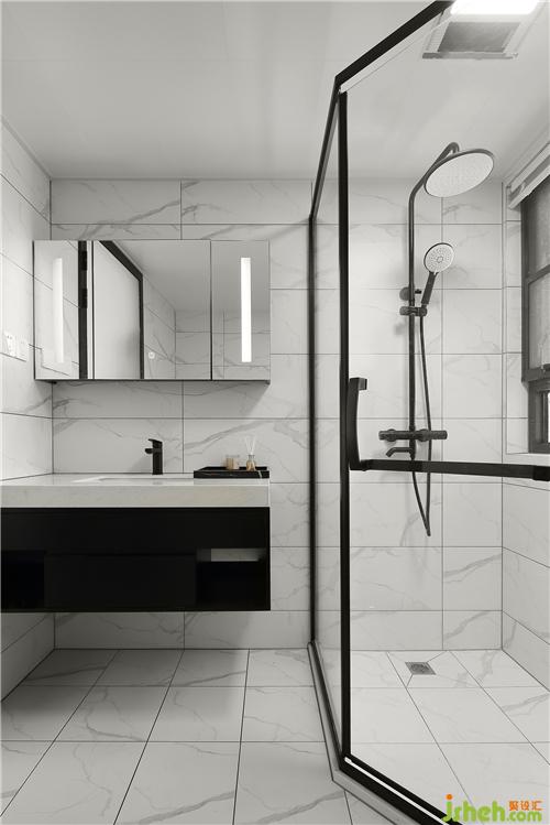 ▲主衛(wèi)光線較弱選擇白色啞光磚 。