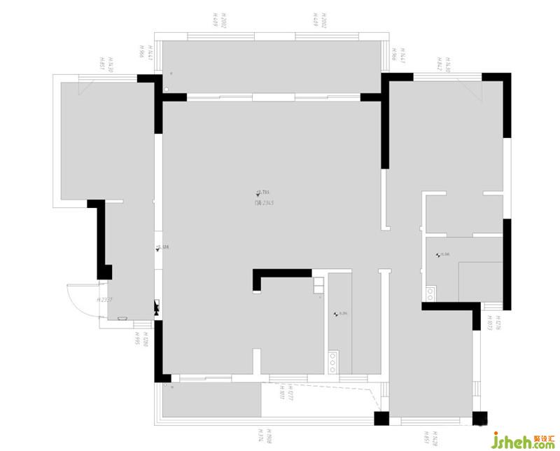 ▲原始平面圖 先天條件非常好,寬敞的入戶門廳作為入戶過渡空間增加了室內(nèi)的私密性,也增強(qiáng)了入戶的儀式感。餐客廳空間寬敞采光好。缺點(diǎn)就是主臥+衛(wèi)生間空間規(guī)劃不合理。