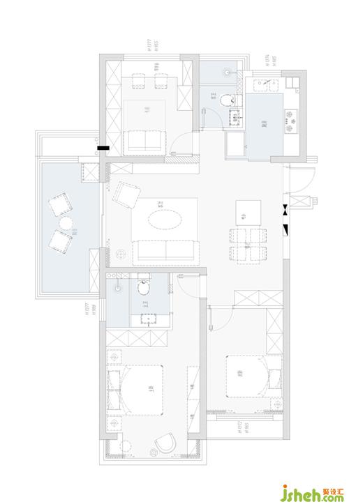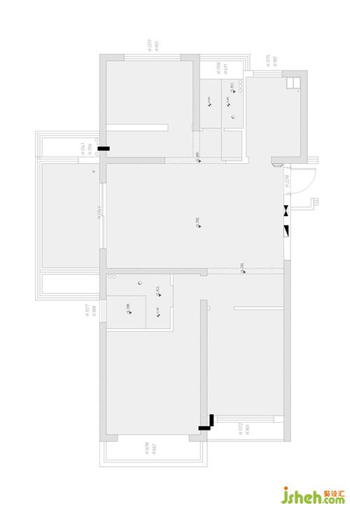 ▲原始平面圖 優(yōu)點(diǎn)是沒(méi)有任何浪費(fèi)的空間(這點(diǎn)其實(shí)也是缺點(diǎn),因?yàn)闆](méi)有浪費(fèi)空間也表明同時(shí)沒(méi)有任何回旋余地過(guò)渡空間。),同時(shí)陽(yáng)臺(tái)足夠?qū)挸?。缺點(diǎn)就是沒(méi)有門(mén)廳,廚房空間相對(duì)較小。