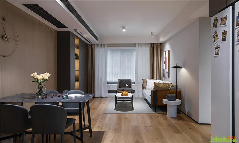 ▲從客廳看向餐廳,加長黑色出風口,拉長客廳線條。