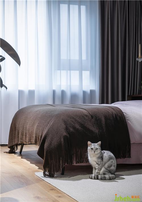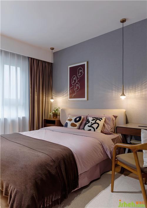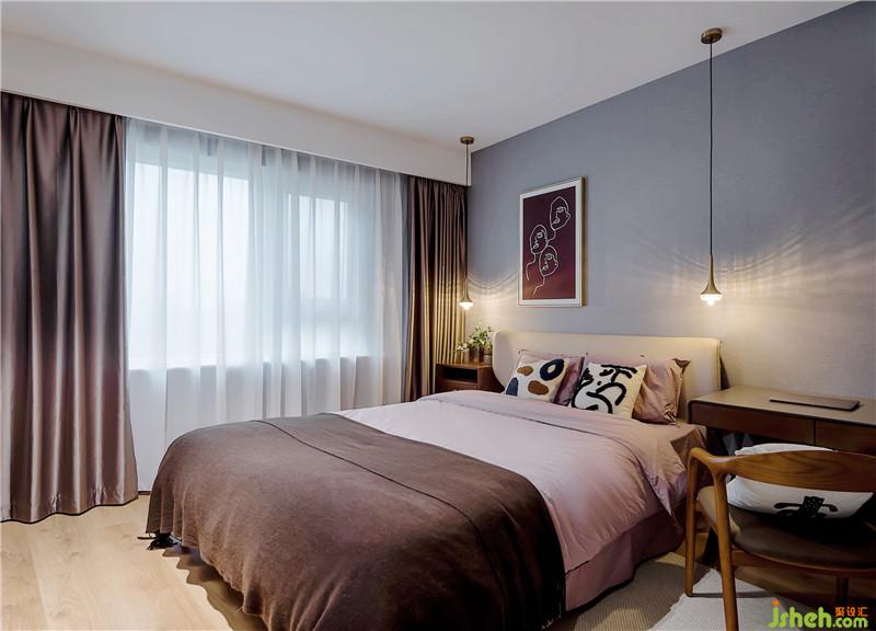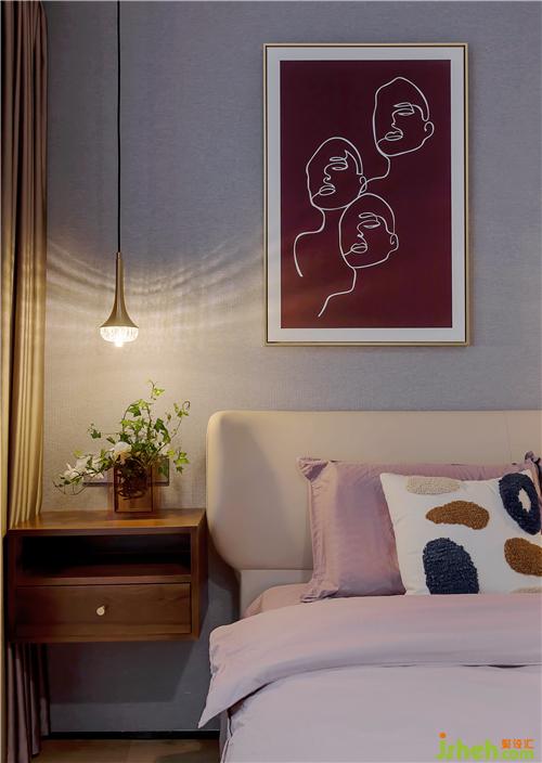 ▲主臥一邊床頭是吊柜,可以節(jié)省空間。另一邊是書桌,便于男主人處理公務(wù),同色系的書桌下還隱藏了一排書架。處處都是細節(jié),處處都是美。