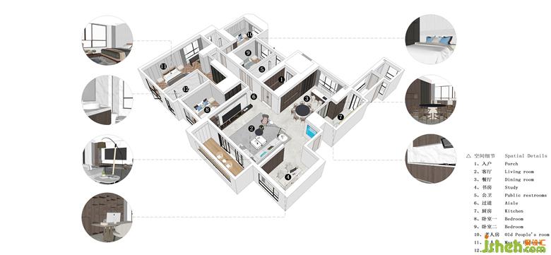 延續(xù):電視背景小面積留白延伸到過道、餐廳。