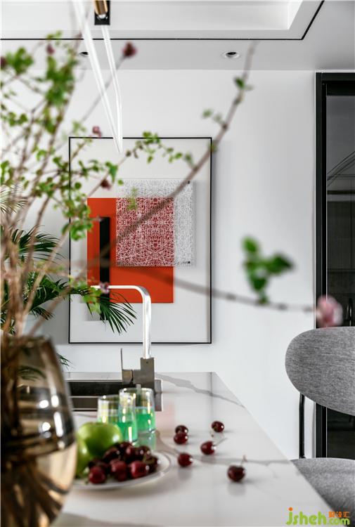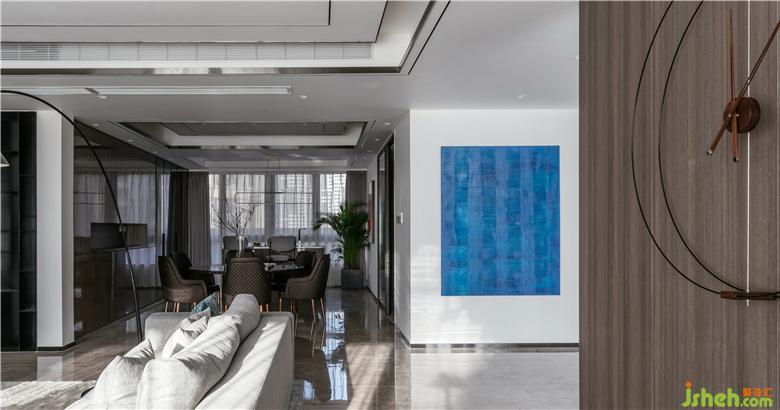 靜待夕陽(yáng)。靜待中,那束光穿過(guò)客廳,捕捉到了那幅跳脫的“大藍(lán)色藝術(shù)油畫(huà)”,明亮?深邃?裝修設(shè)計(jì)