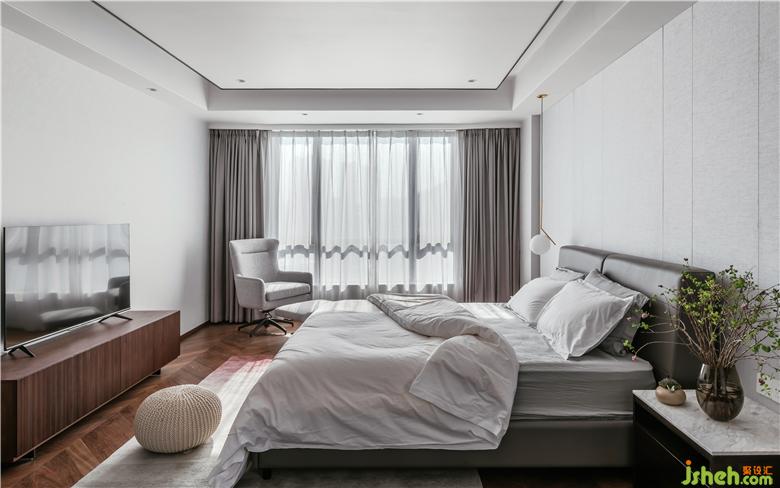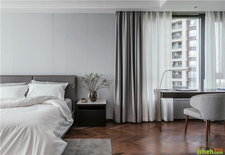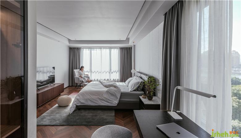 父母房偶爾閑住,男主孝心滿滿,再三強(qiáng)調(diào)這里的設(shè)計(jì)和裝置:大方得體,干凈沉穩(wěn)。