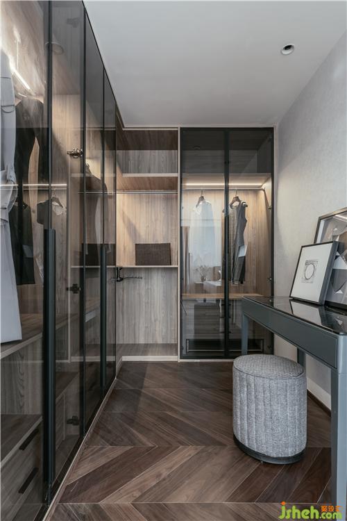 衣帽間通透明亮,灰玻和原木色是女主鐘愛的標(biāo)簽,這里帶著主人的溫度。裝修設(shè)計(jì)