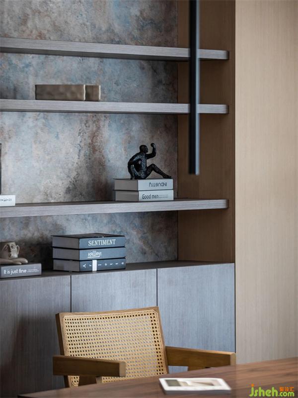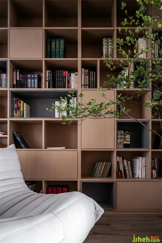 對于這個空間而言,書架上的書籍帶著時間的痕跡和充滿回憶的故事,每一本書都記錄著屋主對生活的嚴(yán)謹(jǐn)和時間的印記。屋主常常說買書是看緣分,在特定的時期和特定的場景也就多了一本不經(jīng)意的書,但是它卻不經(jīng)意的能記錄了時間,地點和心境等故事 。