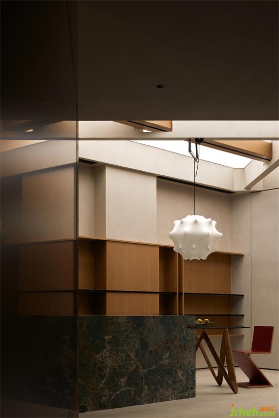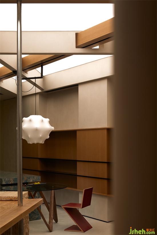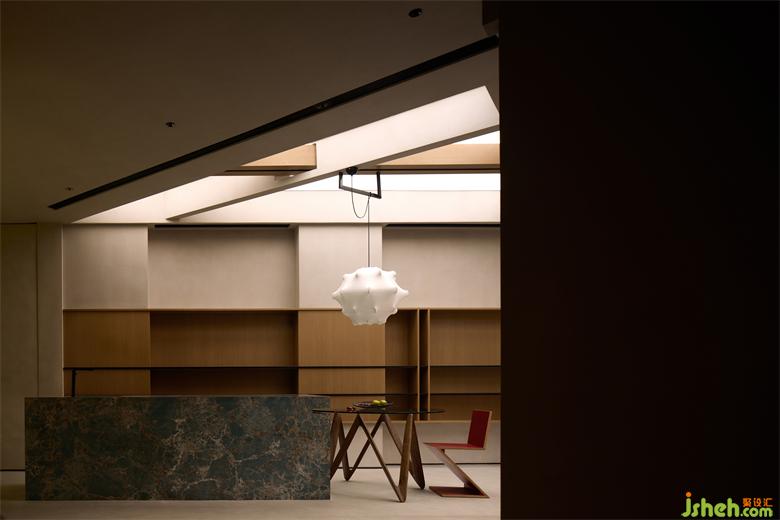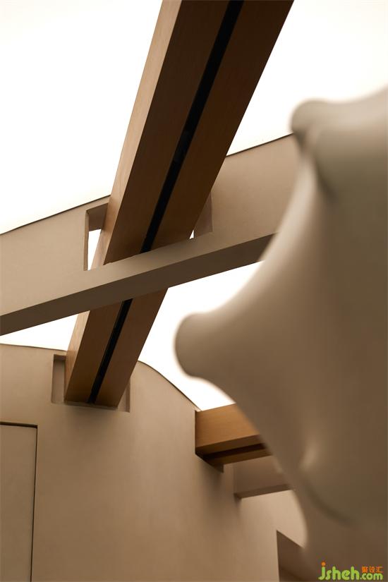作為燈光展廳,光是重要的主角,通過技術(shù)的支持和設(shè)定,在“梁結(jié)構(gòu)”的背面形成一道“光面”的圖層,隨著時(shí)間的變化,呈現(xiàn)出自然光照真確的強(qiáng)弱、明暗、朦朧與清晰邊界的面貌。展廳設(shè)計(jì)家居空間之中,起居室向來有著舉足輕重的分量,根據(jù)場(chǎng)景的不同需要,光由點(diǎn)狀、線形、塊面、圖案元素等豐富形態(tài)暈染而出。