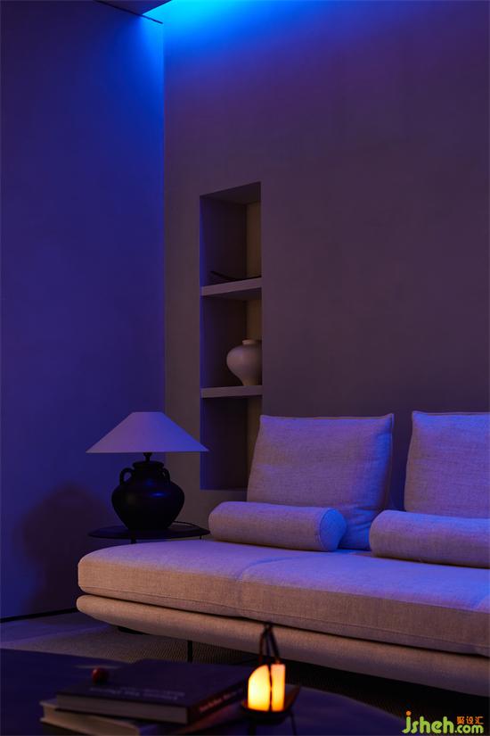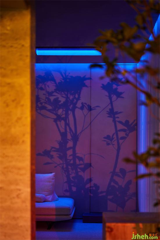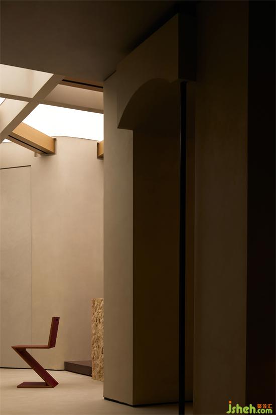 In response to this, at the entrance of the "light channel", a small column is also standing, but the expression of different materials not only reflects the multi-faceted possibility of the column, but also liberates the commonsense support structure into symbolic language with psychological implication, and plays the role of visual balance. So that the column itself, independent from the wall and surface limitations, but also has a flexible artistic vitality.
