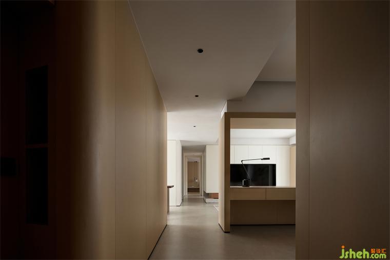 月有陰晴圓缺,水有潮起潮落,不變的是永恒的變化。以筆直過道為軸心,納入兩側(cè)的多個場景,通過色塊的深淺、光影的濃淡、陳設(shè)高低,展露層層遞進(jìn)的景深美學(xué)。在主要場域之內(nèi),裝修設(shè)計盡興記錄朝夕相處的歡樂,在次要區(qū)域完成溫柔的導(dǎo)引。