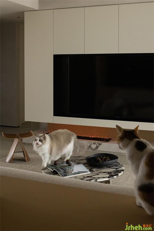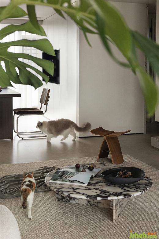 省略吊燈形式,最大化呈現(xiàn)空間的簡明感與通透感,用點狀光源模擬日光的和煦與清柔,促成晝夜交替安穩(wěn)棲居的舒適體感。用天然石材釋放曠野之息,借優(yōu)雅弧形構(gòu)筑溫暖慵懶的生活情景,裝修設(shè)計點綴大葉片綠植與創(chuàng)意家具,使日常情境更具魅力。