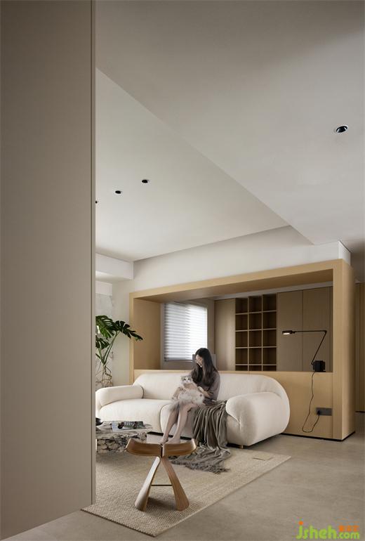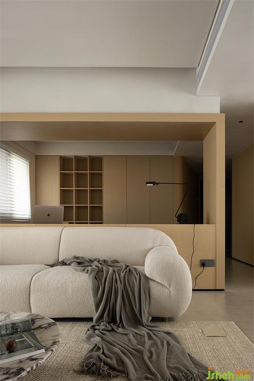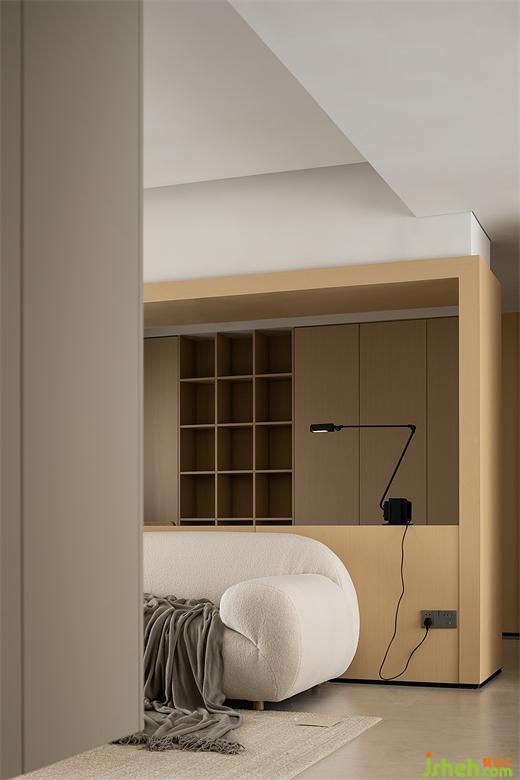 秉持木元素的自然調(diào)性,完成書房的透景意趣,交融各式各樣的功能區(qū),抒發(fā)自然浪漫又理性沉穩(wěn)的空間張力,共創(chuàng)理想的精神島嶼。半開放式結(jié)構(gòu)聯(lián)通室外、過道與客廳,旨在模糊場域的分隔感,于進(jìn)出之間,串聯(lián)靜謐的美好與親密的互動。