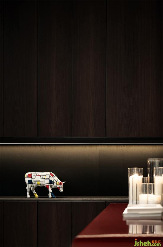 緊湊型別墅布局無法像以往一樣形成四平八穩(wěn)的封閉序列,別墅裝飾設(shè)計空間之間注定是流動與相互滲透的。開放式餐廚便成了會客廳的延續(xù),廚房是最具有煙火氣的地方,女主人是一位90后服裝設(shè)計師,中廚和西廚分開設(shè)計,外面的中島可以滿足家庭簡餐,家庭聚會,在開放式玻璃柜子里面,有女主人收藏的各種水晶杯,當燈光照在水晶杯上那種材質(zhì)本來的質(zhì)感體現(xiàn)的淋漓盡致。
