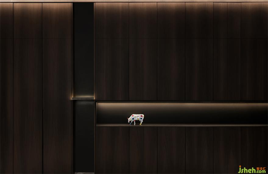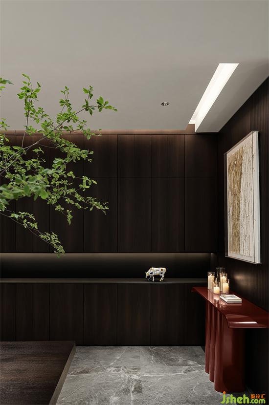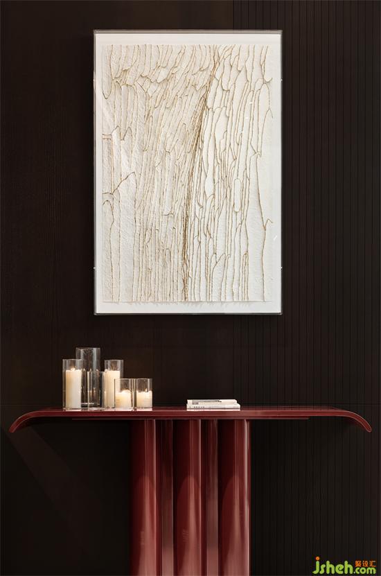 我們相信每一種材質(zhì)都有自己獨特的生命力和語言,我們尊重材質(zhì)初始所傳達的感受,別墅裝飾設(shè)計煙熏橡木色,玻璃,紅色的金屬,紙張拼接的藝術(shù)畫,當他們在一起呈現(xiàn)時產(chǎn)生了非常戲劇性的美。是脆弱,溫暖,堅硬,破碎感。這種材質(zhì)之間的對話是如此生動而有序。