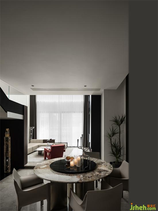 餐廳作為家庭凝聚力的象征,餐廳外面是一個小天井和流水墻,別墅裝飾設(shè)計師希望在每個區(qū)域,每個視角都有讓人賞心悅目的風景,即便是不夠開闊的空間,也讓空間盡可能的從視覺,別墅裝飾聽覺,身體尺度感受到空間的流動和延續(xù),別墅裝飾設(shè)計空間不僅僅是供人們使用的機器,它本身有自己的生命力,這種生命力來自于人和房子之間的身體和情感的互動。