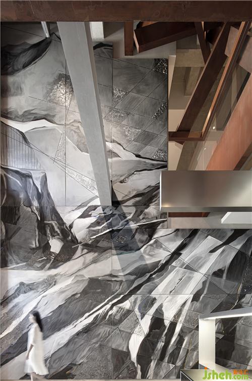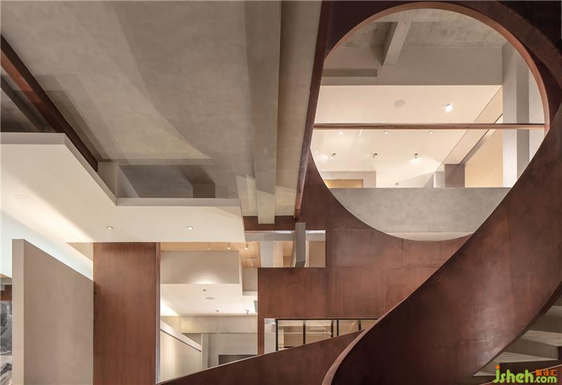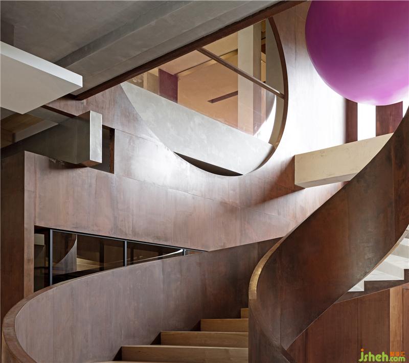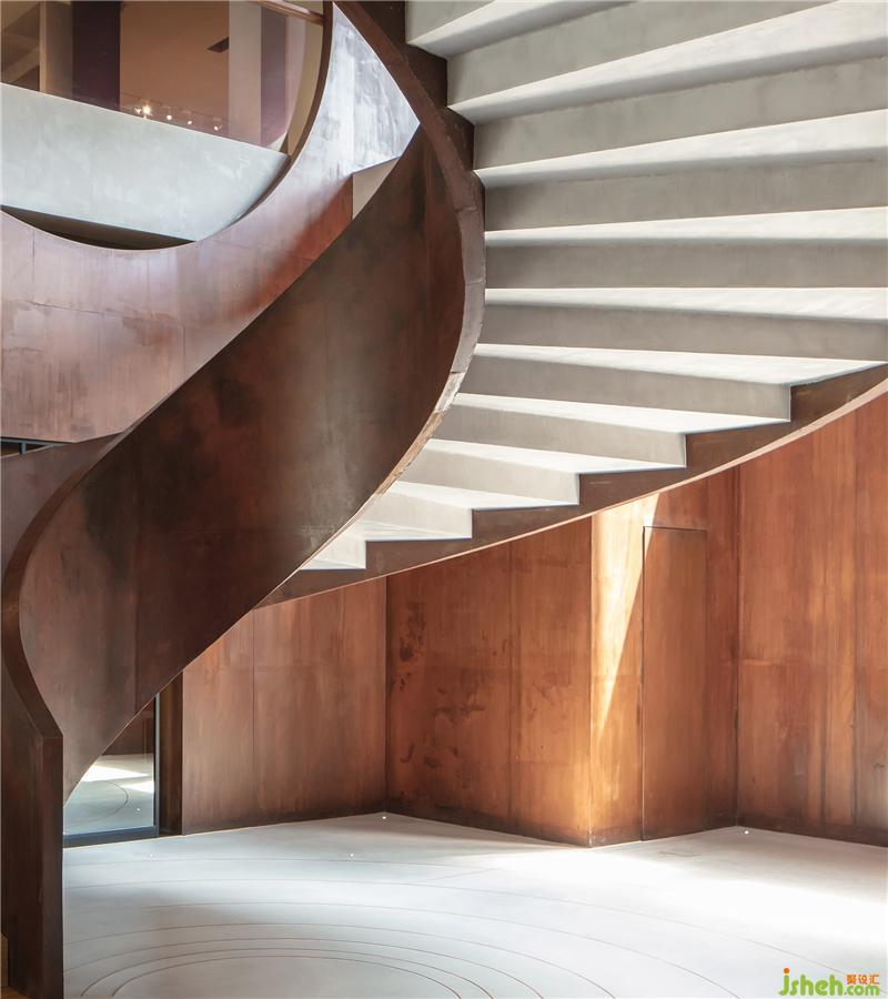 The sphere device of the main passageway’s spiral ladder part becomes the focal point of the whole space.The sphere suspended in the mid air makes the spatial themes richer, to create a sense of mystery and to stretch out people's mind.
