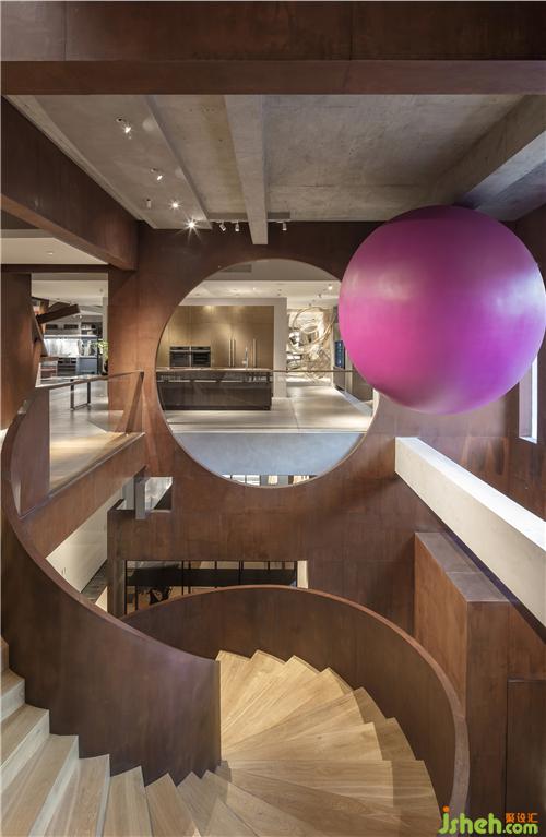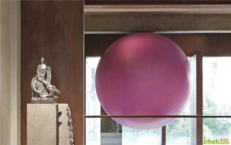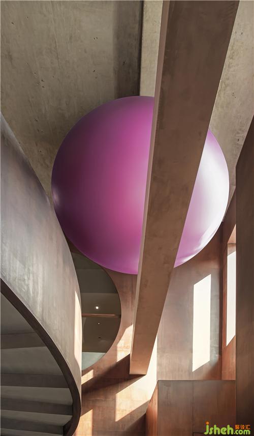主通道旋梯部分的球體裝置成為整個空間的點睛之處,懸掛在半空中的球體,讓空間旋律更為豐富,營造神秘感,意念延展無盡。