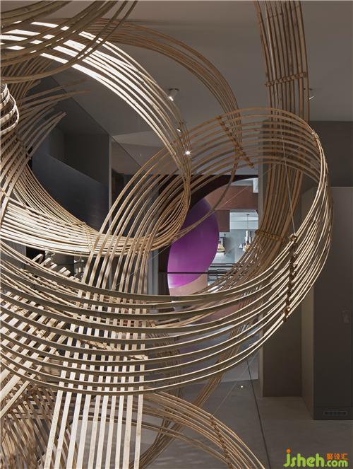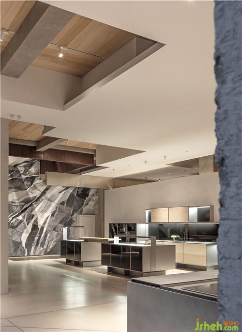 空間中不同的體塊穿插在各種角度自然會(huì)形成變化多樣的立體構(gòu)成。展廳設(shè)計(jì)