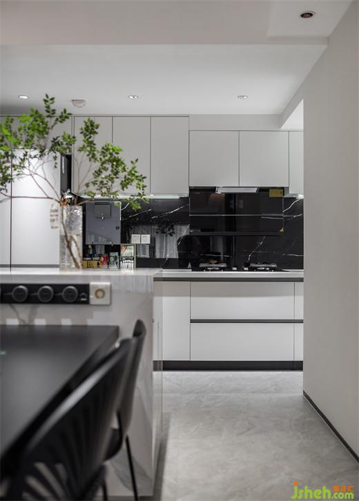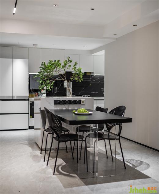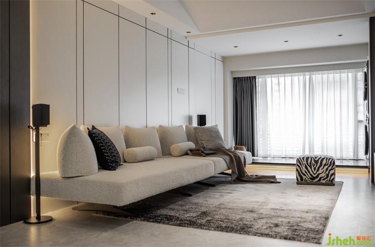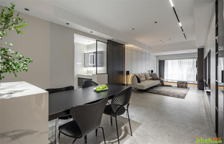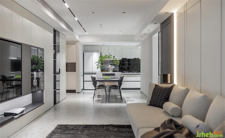 項(xiàng)目介紹 | 本案主要以黑白灰為基調(diào),白色系作為主色調(diào),黑色為點(diǎn)綴色調(diào),其中男女業(yè)主有兩個(gè)上幼兒園的小朋友,所以在色調(diào)上還會(huì)融合一些童趣的小物件,讓空間更活潑,層次感更強(qiáng)。隱形門的設(shè)計(jì)使得沙發(fā)背景更加的整體線性分明,電視背景兼?zhèn)淞艘徽诺膬?chǔ)物柜,使得空間有更好的延展性,整體性更強(qiáng)。在小空間里面針對(duì)家四口來說,在兼?zhèn)涿烙^的同時(shí)也要做到一定的儲(chǔ)物功能。裝修設(shè)計(jì)