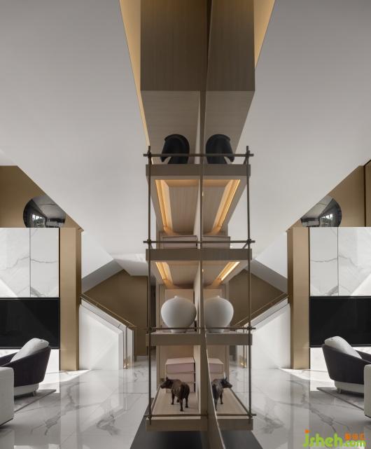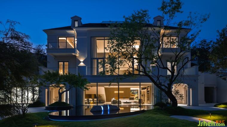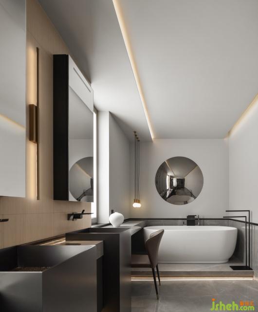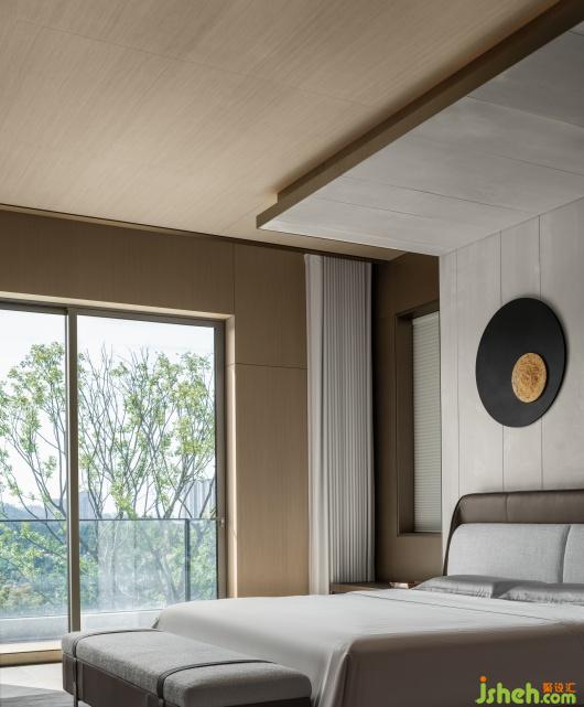 別墅設(shè)計主臥柔和的淺灰色墻面搭配木質(zhì)面板,床頭背景的藝術(shù)設(shè)計營造出寧靜舒適的睡眠環(huán)境,讓人感受到一種內(nèi)心的安寧。臥室將功能性與奢華感完美融合想象在這里,夜晚的星空透過大面積落地窗投射進來,伴隨著窗外的微風,讓人沉浸于自然與舒適之中。臥室內(nèi)設(shè)有獨立的步入式衣帽間和寬敞衛(wèi)浴,空間的巧妙分隔為生活提供了更多隱私,現(xiàn)代簡約的浴缸與大理石臺面相得益彰,為心靈提供了一個靜謐的港灣。