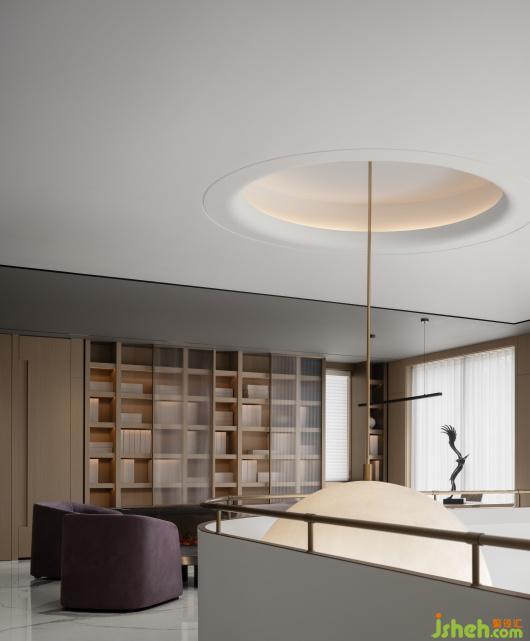 餐廳與開放空間緊密銜接,完美呈現(xiàn)了當代輕奢主義的優(yōu)雅與簡潔。餐桌是整個家庭的核心,它不僅是日常用餐的中心,也是家人相聚的紐帶,承載著溫馨的家庭時光。特別是圓桌的設(shè)計,不僅具有極高的功能性,能夠輕松容納全家人共餐,還在家庭聚會中拉近了彼此的距離,增進了親密感。在燈光設(shè)計上,簡約的吊燈懸掛于餐桌正上方,細致的線條勾勒出空間的層次與高度,柔和的光線與整個空間的輕奢氛圍相得益彰。尤其是在燭光晚餐時,燈光散發(fā)出的溫暖,進一步強化了空間的親密感與情感聯(lián)結(jié)。