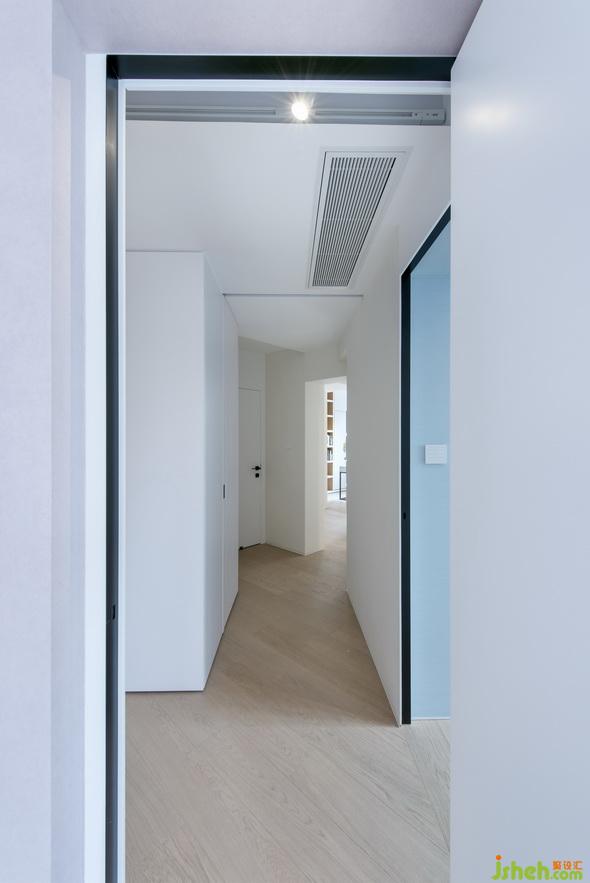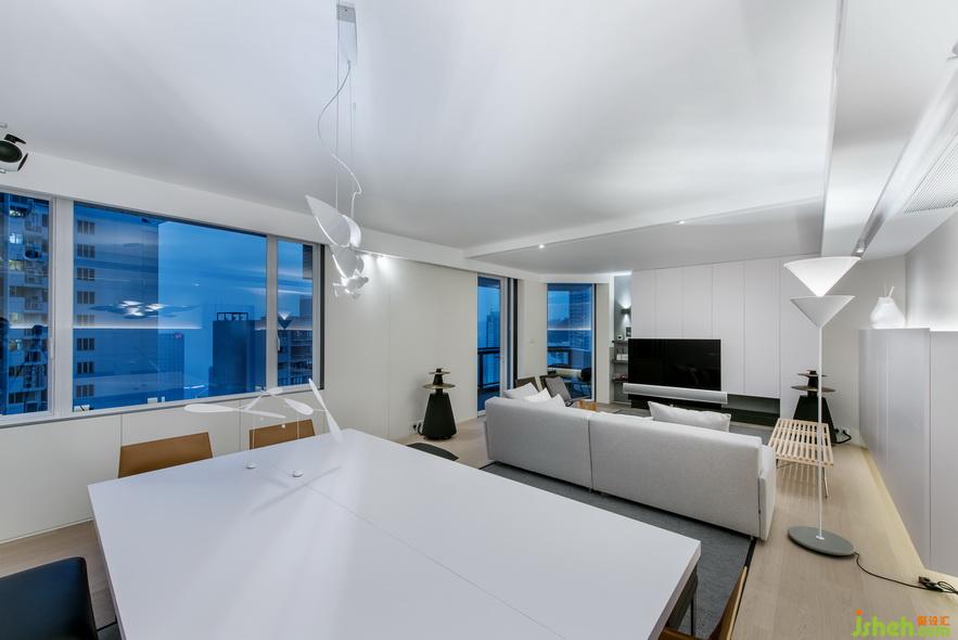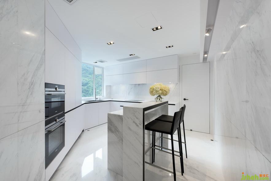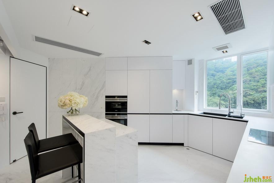 廚房內(nèi)部則充分融合了自然光照與人工光照,