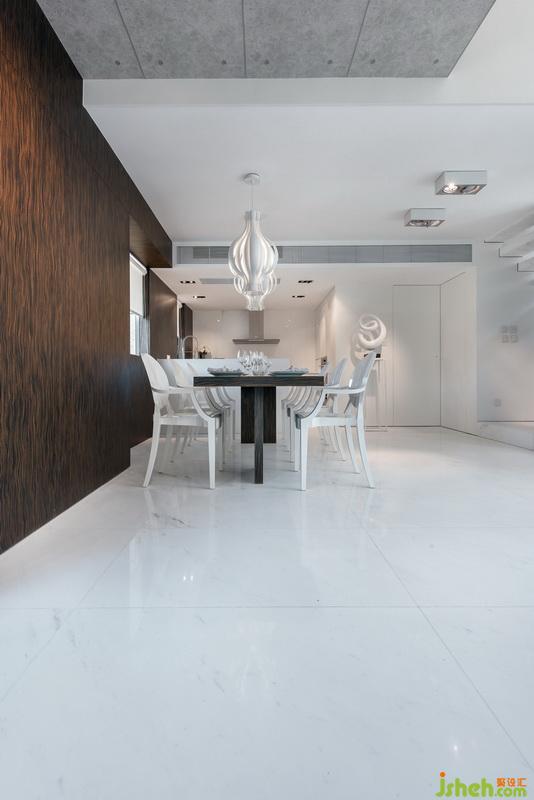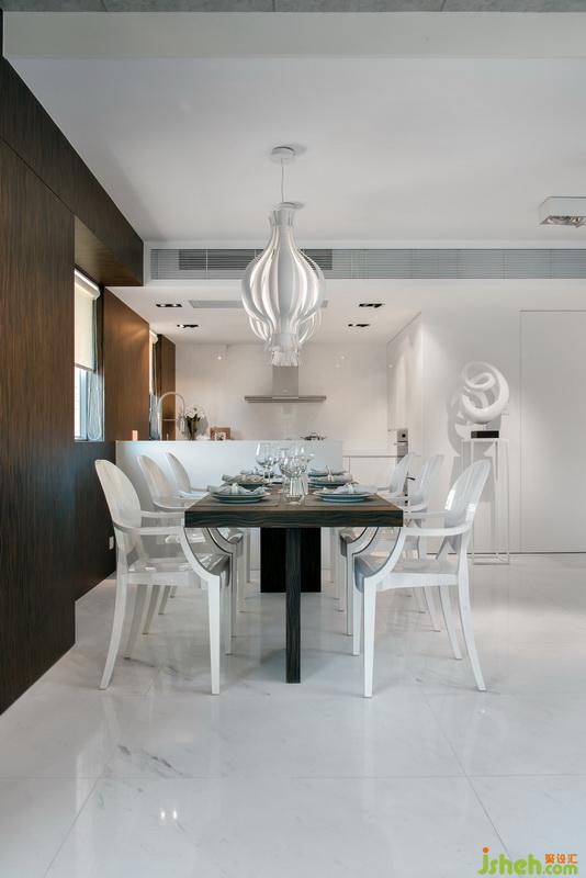 在一個空間中,隔斷和擺設越多,對生活的束縛也就越大,而這套家居設計化繁為簡,室內(nèi)設計師余留下的元素將空間彰顯地明亮通透。餐廳廚房配有白色可麗耐臺面,與潔白的大理石地板交相呼應,樸實渾厚的深棕色木質墻壁一掃極簡空間的冷酷。木色與灰白色的搭配,看似淡雅的色彩與結構,卻在不經(jīng)意間為住戶帶來溫暖的舒適之感。餐廳上的吊頂更是整個區(qū)域的點睛之筆。而客廳的用色比例與布局平衡讓極簡充滿層次又賦予活力,巧妙地放置簡潔的純白色軟裝進行搭配,不僅為空間增添了靈動之感,同時也是一種獨特的氣質體現(xiàn)。這樣的極簡之美,將會令你難以抗拒。
