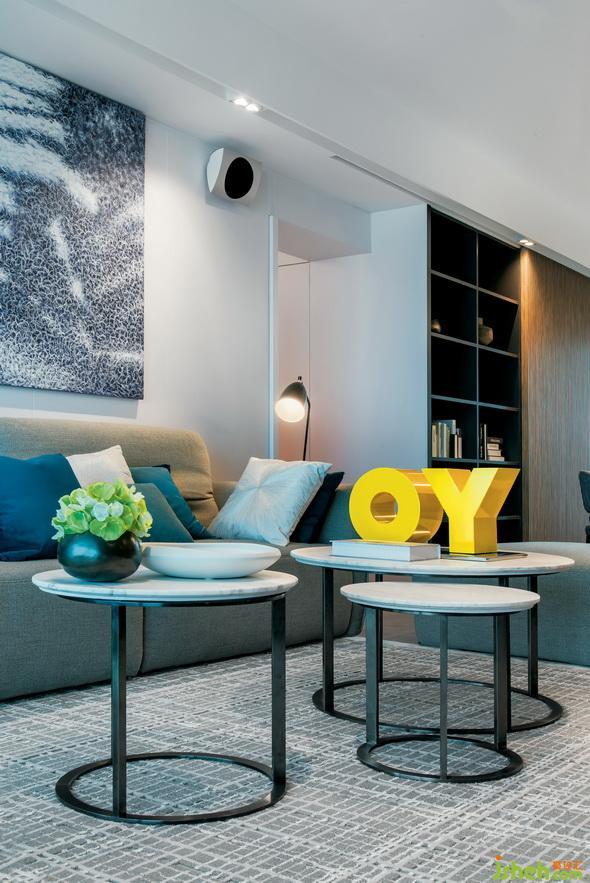 藍灰疊加,奠定沉穩(wěn)簡約的風格
