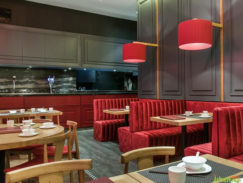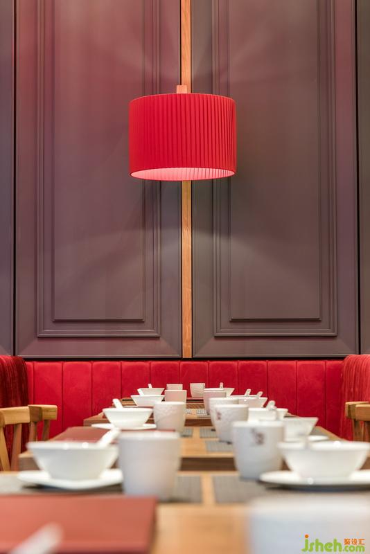 點一龍內(nèi)的餐桌設(shè)置大致分為兩種,最多的便是兩人桌與四人桌。略帶金絲的木質(zhì)桌椅仿佛溫潤的茶水,完美融入店內(nèi)大氣雅致的腔調(diào)之中??ㄗ鶆t比其他座位濃艷了許多,絲絨之感的座位與同色系燈籠相映成趣。慵懶地蜷縮在柔軟沙發(fā)上,抿一口清茶,吃幾籠點心,在這個燈紅酒綠之都,尋找一份慢節(jié)奏的愜意。餐廳設(shè)計