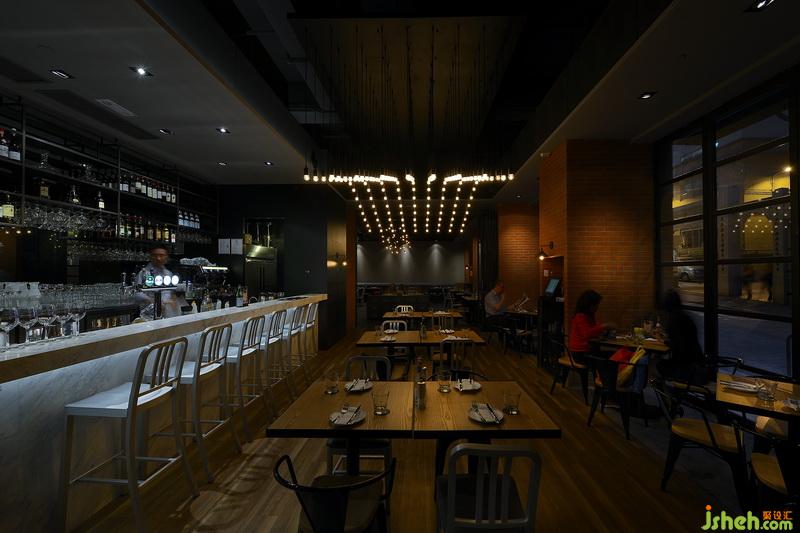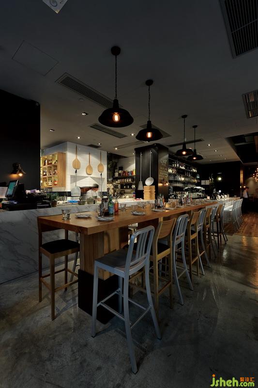 與開(kāi)放式廚房并列的吧臺(tái)區(qū)是夜晚客的天堂