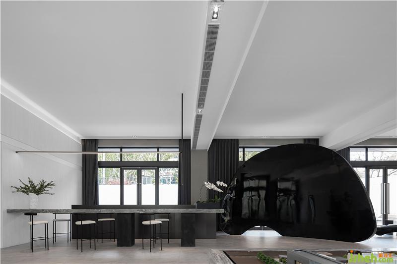 建筑的格局是南北通透,設(shè)計(jì)師采用了全高清落地玻璃設(shè)計(jì),最大限度保證了室內(nèi)充足的采光,自然的換氣和視野的開闊。接待中心設(shè)計(jì)