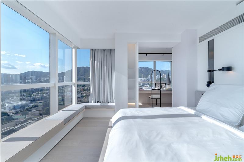 樓上的屋主臥室和書房,依舊是三開面的落地窗,依舊是無死角的全采光。無論晨醒時分亦或者午夜之前,打開窗帷,你會發(fā)現(xiàn)這座城市最經(jīng)典的畫面已經(jīng)等候窗前。眼中飽覽四季美色,心中細(xì)品整個城市更新迭代的強大生機,仿佛自己就是這座城的中心。