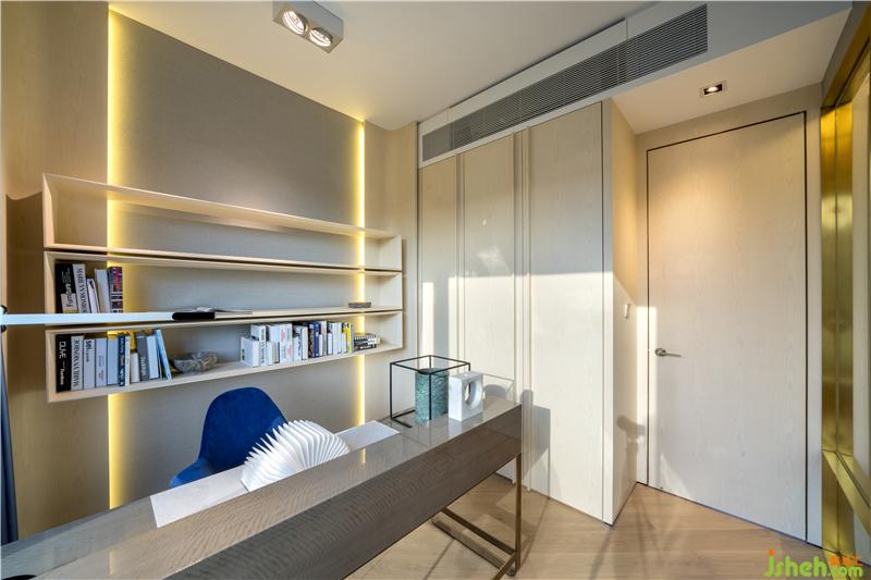 主臥的起居空間少了些娛樂元素,多了些辦公氛圍?,F(xiàn)代主義輕奢風格的裝潢,提醒房間主人時刻保持清醒、狀態(tài)在線。