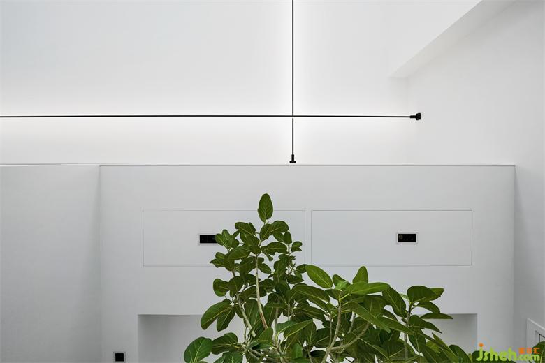 一層是屋主一家的社交空間。門廳前,一株高大的非洲茉莉吸人眼球。香港頂復(fù)設(shè)計師在這里植入巧思,以綠植為軸,辟出兩條互不攪擾的功能動線:往左,一路延展至主家起居的每個角落;向右,洄游串聯(lián)起保姆主理的餐廳廚房。而綠植自帶的色彩和香氣,又在一片低飽和色調(diào)中綴上了綠意,給單調(diào)的空間注入了生機。此外,非洲茉莉交錯的枝杈和肥厚的葉片,亦有充當空間障景的妙用,樹影中遮住私密。