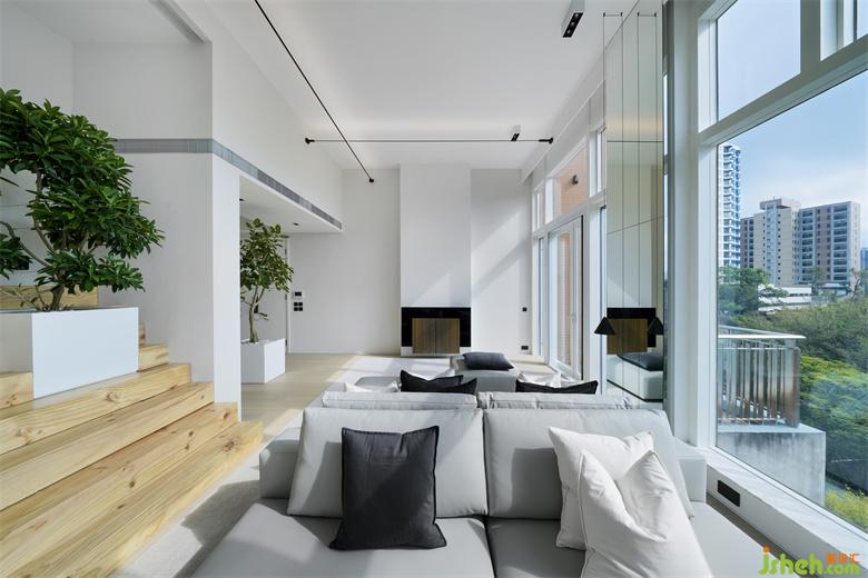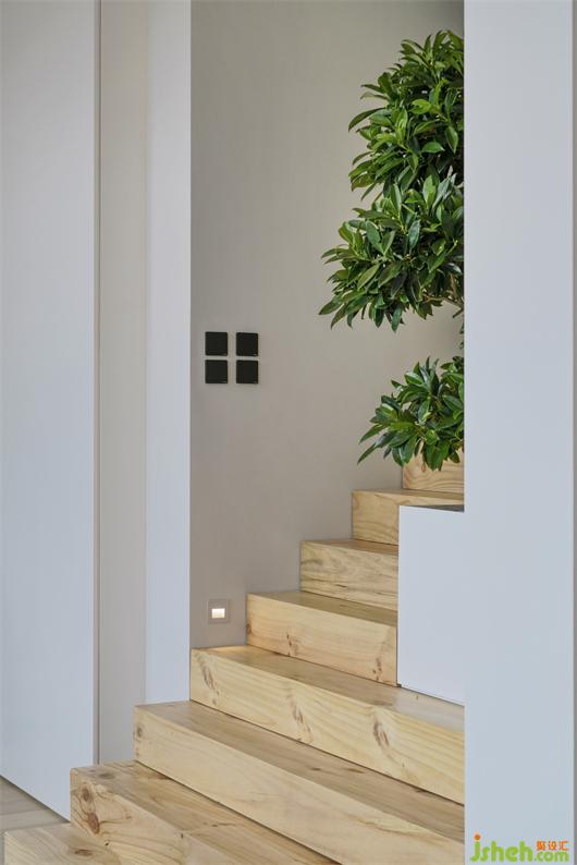 “就以這條實木樓梯和這棵孟加拉橡膠樹的組合為例,裸感、原始、透氣、沉穩(wěn),是人們看到、踏上和聽見這條樓梯時產生的感覺,而細膩、蔥郁、生機、香氣,則是人們看到、觸到和嗅到這棵植株時獲得的感知。香港頂復設計同是木質,同處一隅,一個是物件,一個是生命,便可生出如此多的感官體驗,多么有趣。試想,冬日里的午后時光,暖陽在松木階梯上折射光影、留下余溫,緊挨著梯旁的橡膠木坐下,小憩一會兒或無所謂做點什么,都總比只是從旁路過要美好吧?!?
