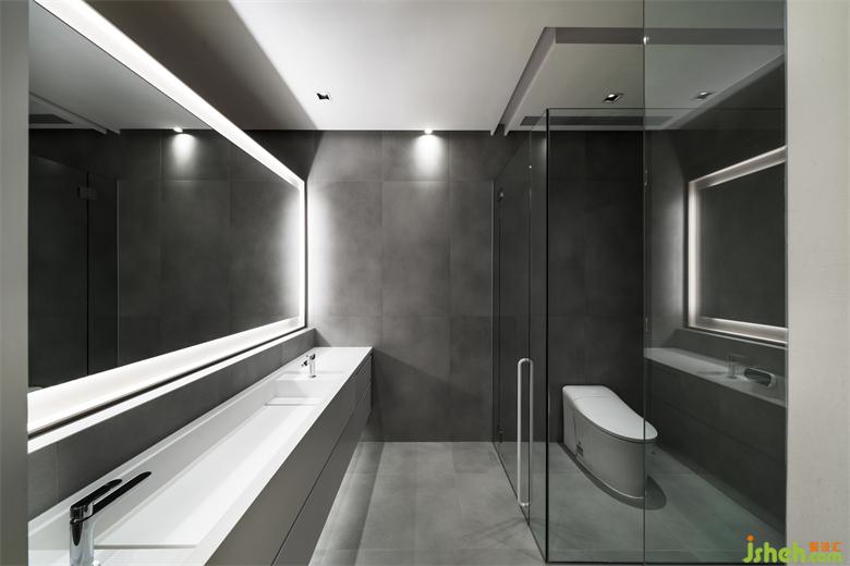 主臥衛(wèi)生間,最私密的場域搭配最經典的黑色系,讓你無論今天從職場帶著什么樣的心情態(tài)度歸家,都能迅速沉靜:無論是以“坐姿”思考人生,還是以“立姿”洗盡疲勞,都保證可以在干濕分離的功能分區(qū)里重振士氣。干濕分離是真的很香,保持了干燥潔凈,也讓空間更加專一。