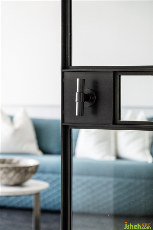 小型的私人客廳,簡約自然的手法貫穿始終,克制注入些許個人喜愛的低飽和度偏冷色調(diào)的藍色系列家具,空間情緒彰顯和諧舒適。